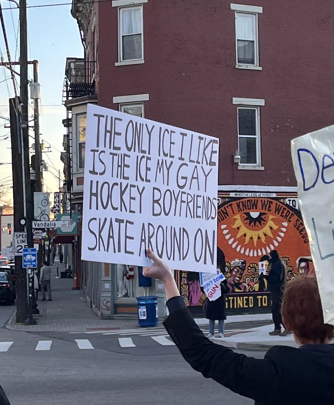 Heated Rivalry. Yes, I’m one of the straight women who loved the show. I actually watched it twice because it made me so happy. I’ve thought a little about why I loved this show so much, and I think it’s because of a few things. First of all, I find the leads’ acting skills impressive. I believe their love and I also find them adorable. I love that the story centers queer happiness, not trauma. I also think I enjoy watching a fuller spectrum of what masculinity can be––there is toughness and competitiveness, yes, but there is also softness, tenderness, and quiet happiness. It feels real. I am also wayyy impressed with Connor Storrie’s Russian skills. My favorite scene is his four-page monologue in Russian. So, there you have it! I wish I could take credit for the protest sign below. I saw this originally on Reddit.